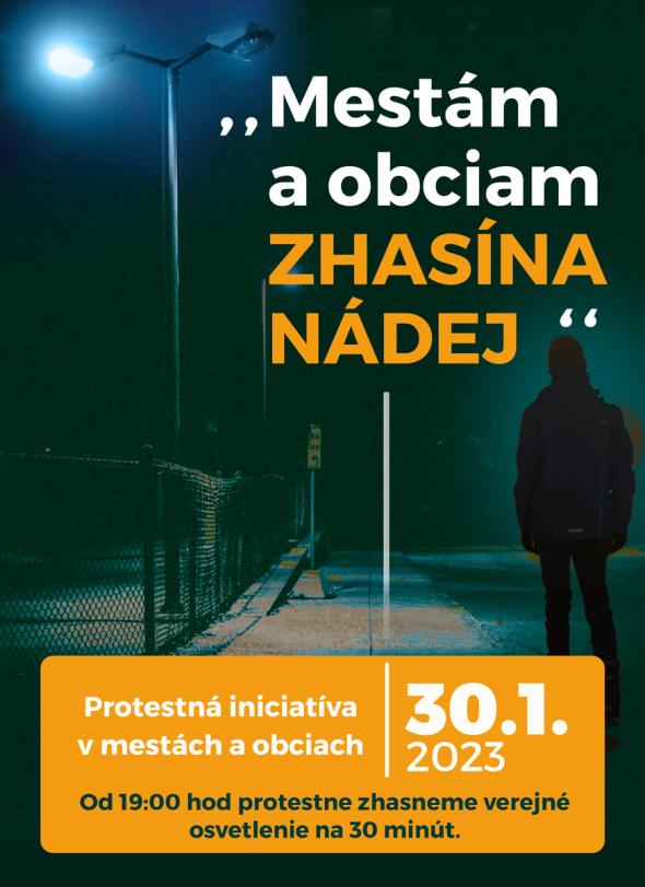 Slovenska s názvom " Mestám a obciam zhasína nádej ", ktorá sa uskutoční 30. januára formou zhasnutia verejného osvetlenia v čase od 19:00 hodine do 19:30 hodine.